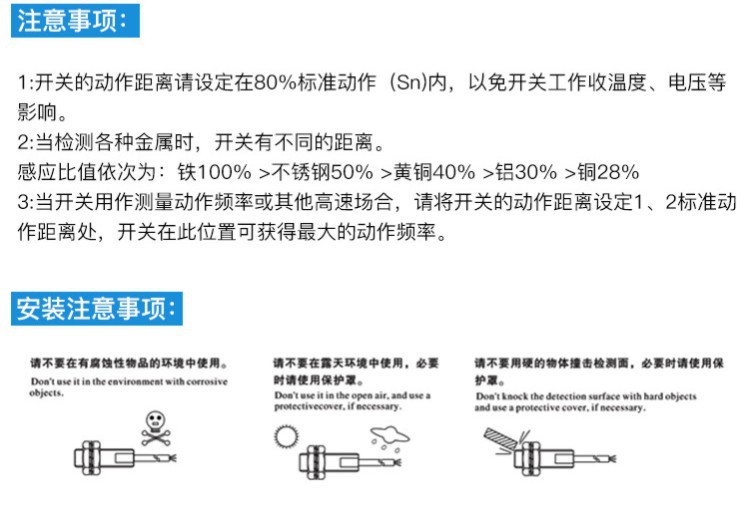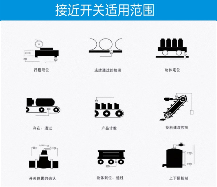 本公司生產(chǎn)接近開(kāi)關(guān)具有頻率響應(yīng)快、使用壽命長(zhǎng)、動(dòng)作可靠、抗干擾能力強(qiáng)并具有耐振、耐腐蝕、防水性好等特點(diǎn),產(chǎn)品被廣泛用在機(jī)械、化工、造紙、輕工等行業(yè)作限位、定位、檢測(cè)、計(jì)數(shù)、測(cè)速等傳感用